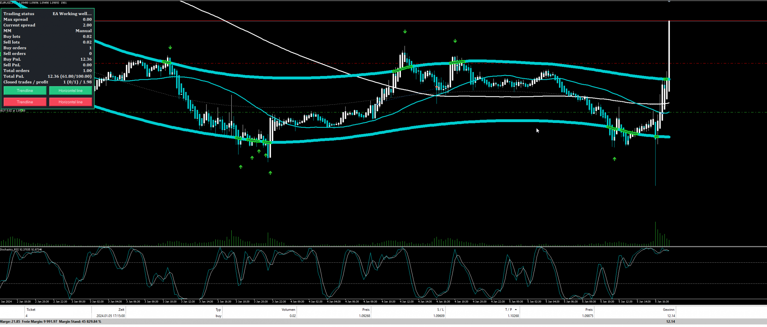 Trades werden über Drawlines gesetzt – das ermöglicht dir volle Kontroller bei gleichzeitig maximaler Automation.