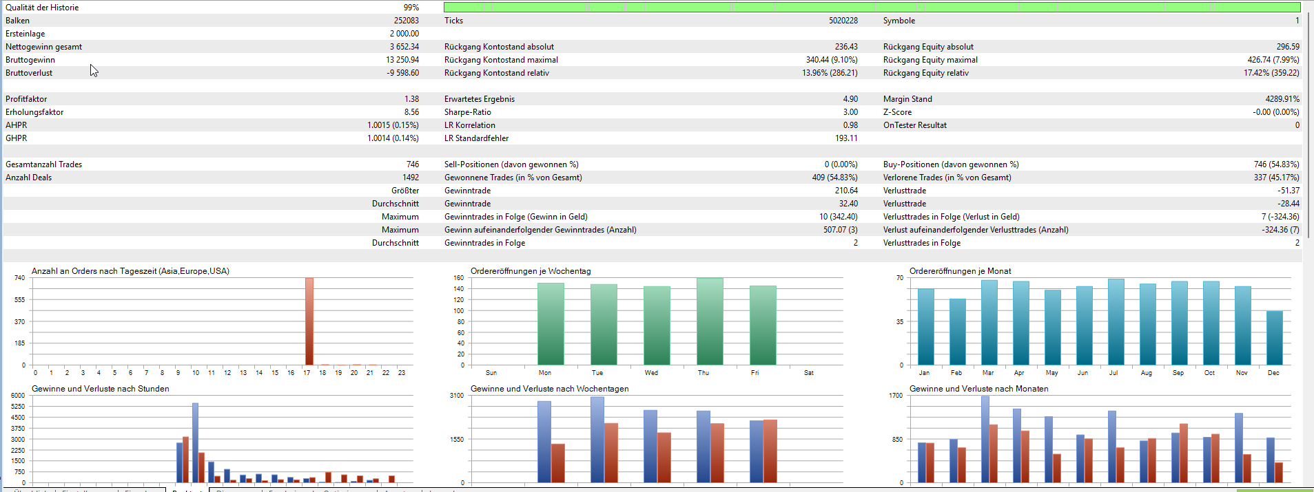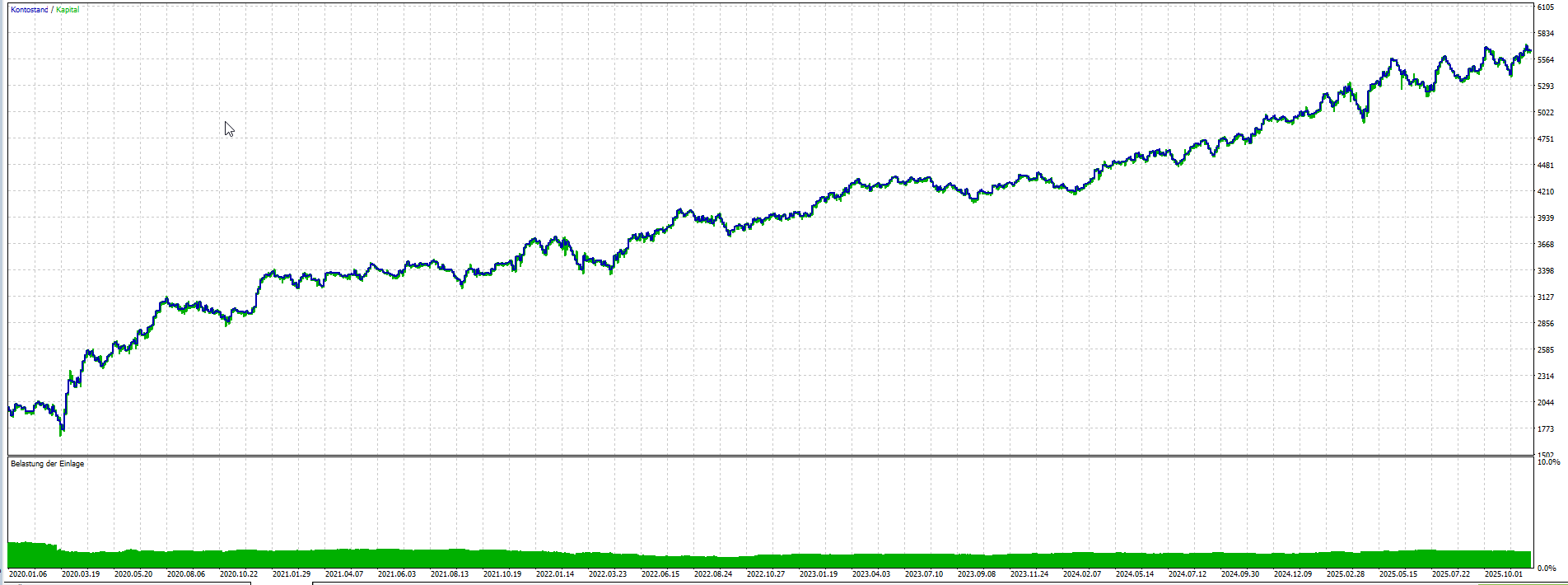 Merksatz: Der EA arbeitet nach dem Prinzip „langsam, aber konstant“. Kein Trade ist ein garantierter Gewinn. Der EA arbeitet mit Stop-Loss und hat auch Verlustphasen. Die Stärke liegt in der statistischen Überlegenheit über einen längeren Zeitraum hinweg. Nun hoffe ich, dass wir nicht ausgerechnet in einer Verlustphase starten 🙂